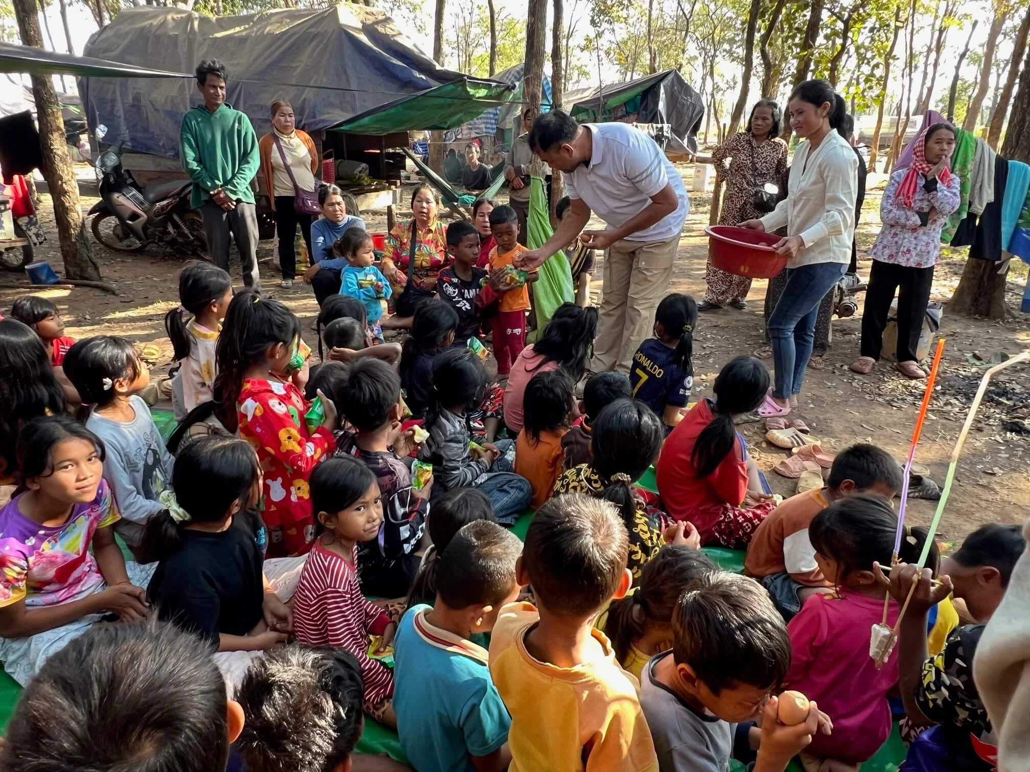 In their latest efforts, under the expert guidance of our dedicated director Pastor Abe (who is still sporting four broken ribs and a sore arm, leg and head), our team converged on one of the evacuation camps near Siem Reap to deliver some much needed food aid and just as importantly a modified teaching program to hundreds of children.